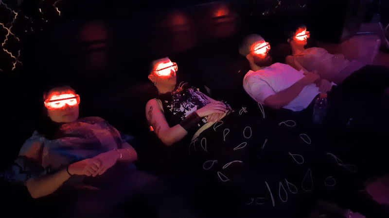 An immersive experience where participants wear synchronized flickering light glasses, creating a shared visual journey even with closed eyes. The rhythmic light pulses stimulate the brain’s visual cortex, inducing geometric visual hallucinations and fostering altered states of consciousness. In collaboration with Light.Clinic